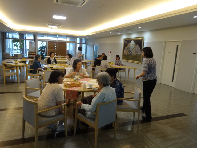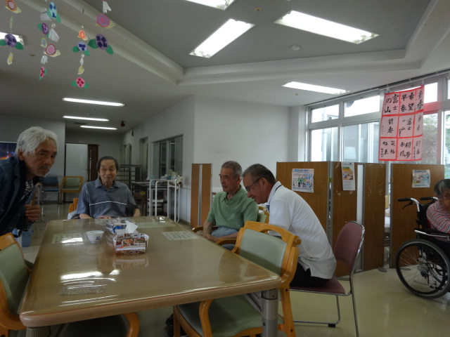 6月27日、サンケア太宰府のデイサービスに伺いました。 男性の利用者との傾聴の一場面です。 非日常の出来事に大変喜んでいただきました。 帰りには別れを惜しんで、握手で送っていただきました。
